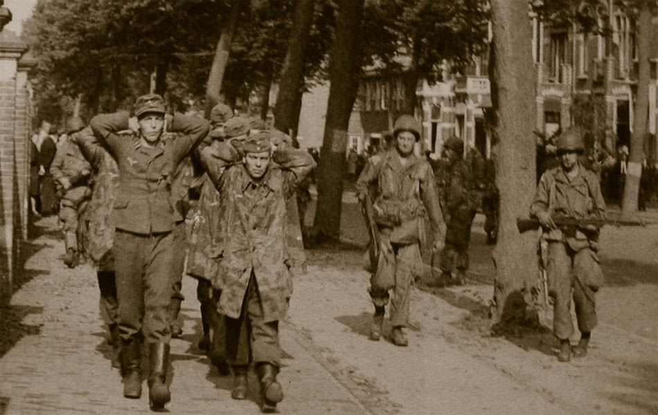 Wychen, September 1944. Duitse krijgsgevangen worden afgevoerd door Amerikaanse Paratroopers.