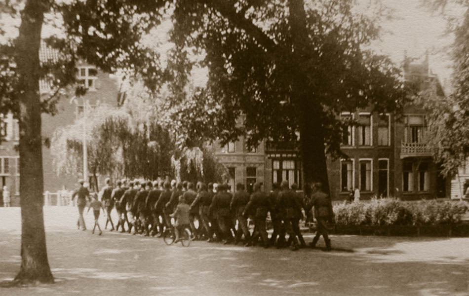 Alkmaar, begin van de oorlog (1940 of 1941). Duitse soldaten marcheren door de stad... Bijna onmogelijk deze lokatie te vinden ?