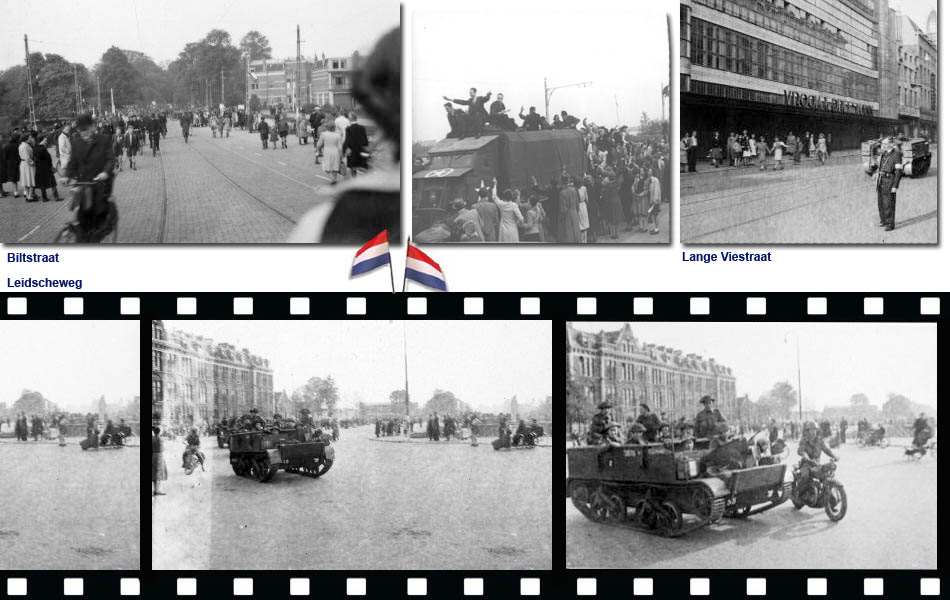 Allemagtig-pragtige plaotsies van Utregse straote met geallieerde soldaote. Tok ervan gao zinge ! As ik bove op de Dom stao...