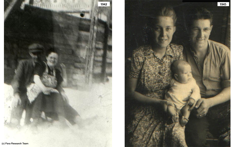 Utrecht 1942: Mijn overgrootouders, Dirk en Anna Meijdam (links), in hun tuin aan de oude Liesboschweg. Rechts; mijn grootouders, Louis en