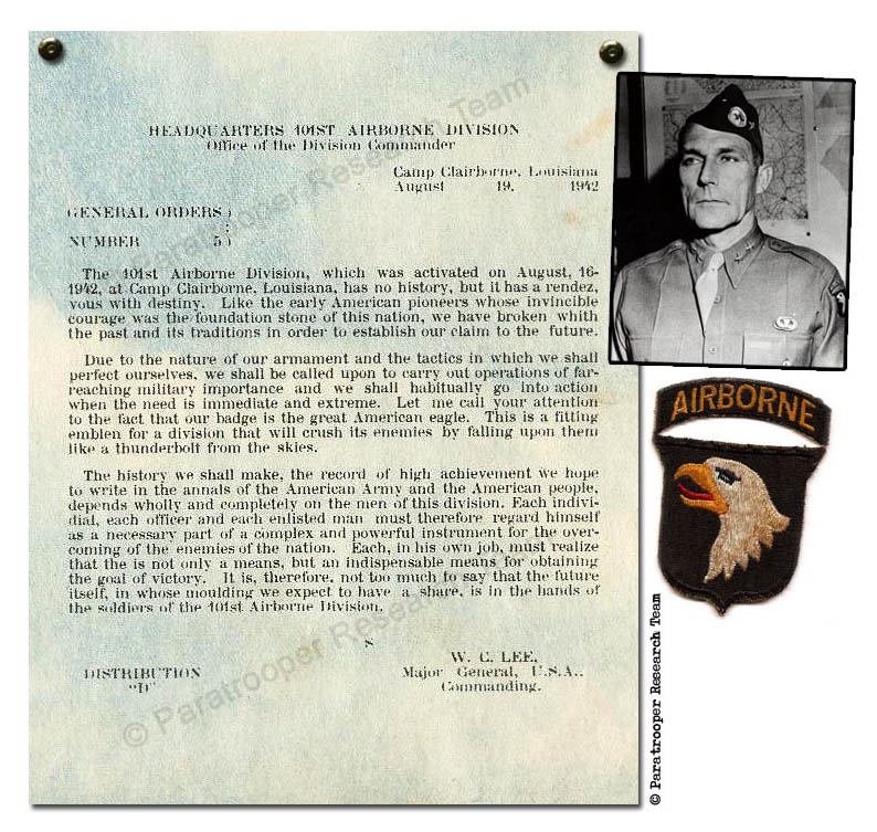 © Paratrooper Research Team - Activation 101st Airborne Division - General Orders Nr. 5
