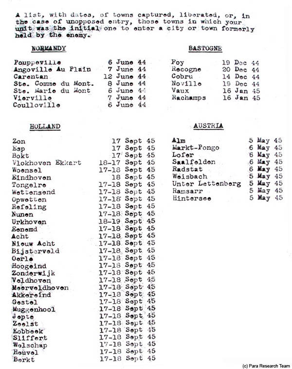 © Paratrooper Research Team - Dutch Villages Liberated by the 506th PIR