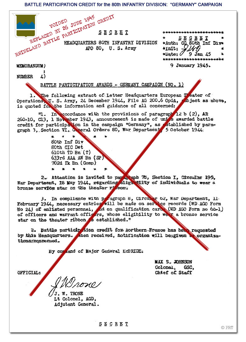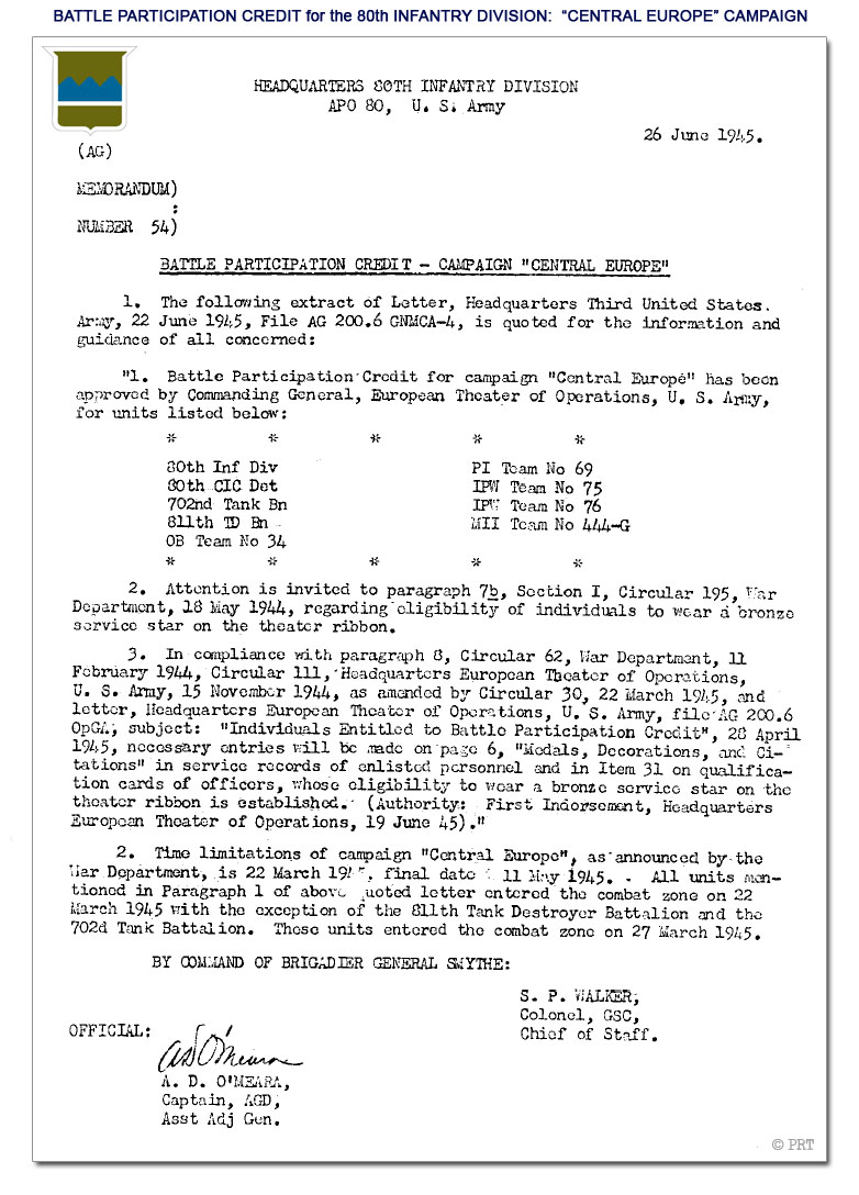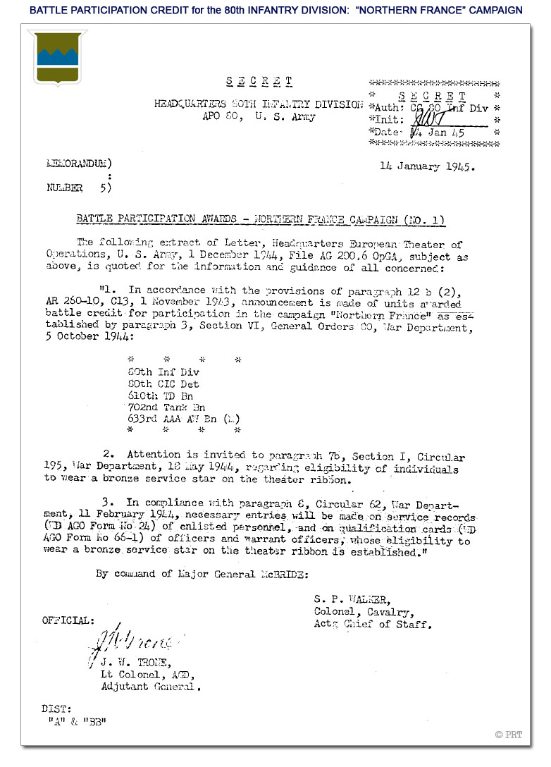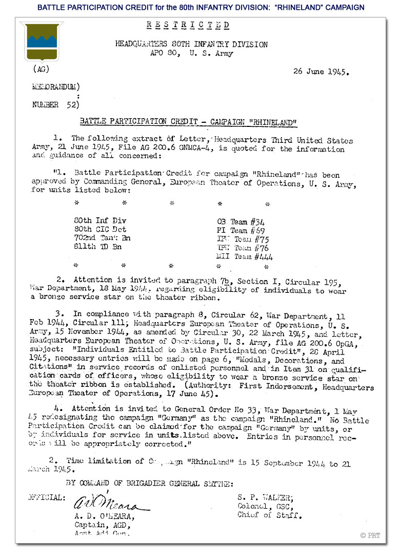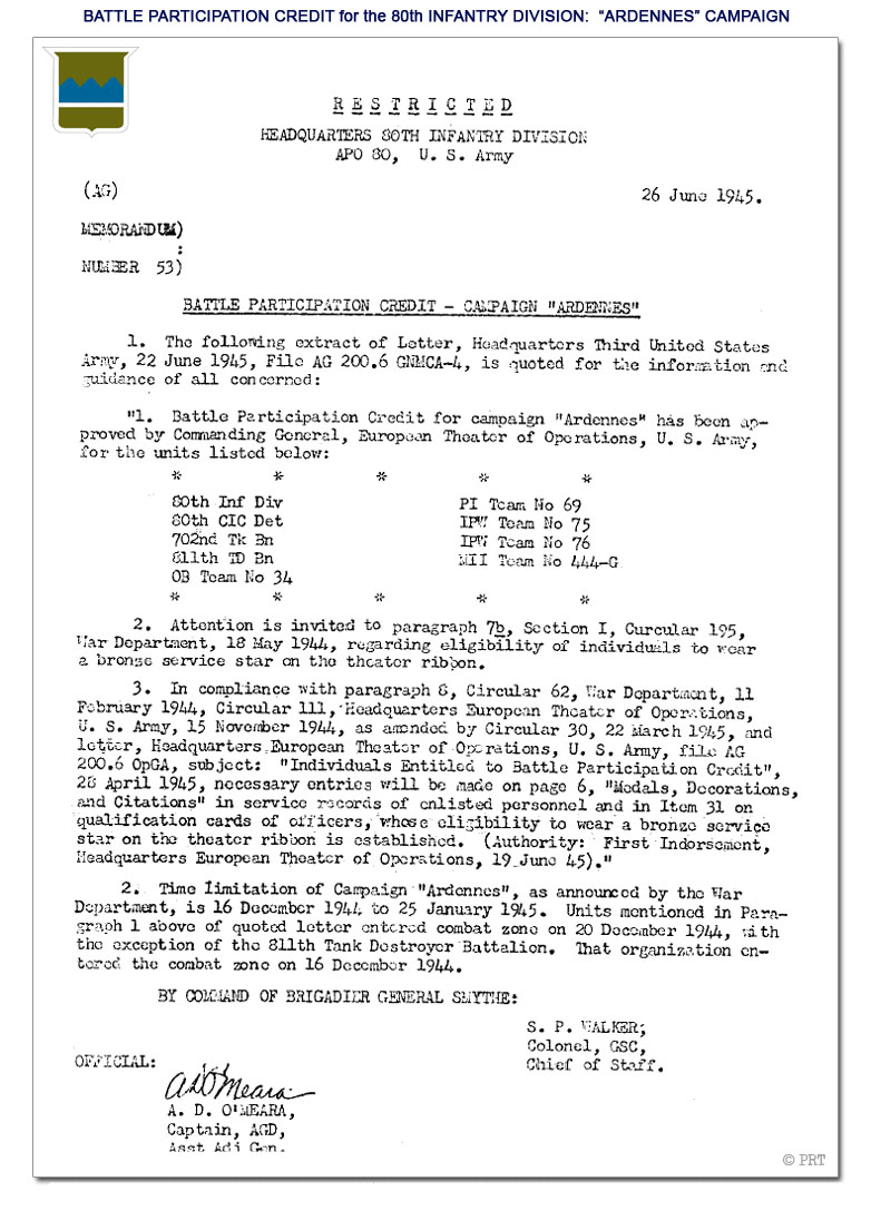 © PRT - 80th Infantry Division WWII Battle Credits