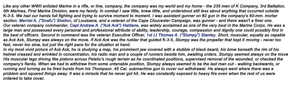 E.B. Sledge on fellow Marines: 'Snafu' Shelton, 'Ack Ack' Haldane and 'Stumpy' Stanley
